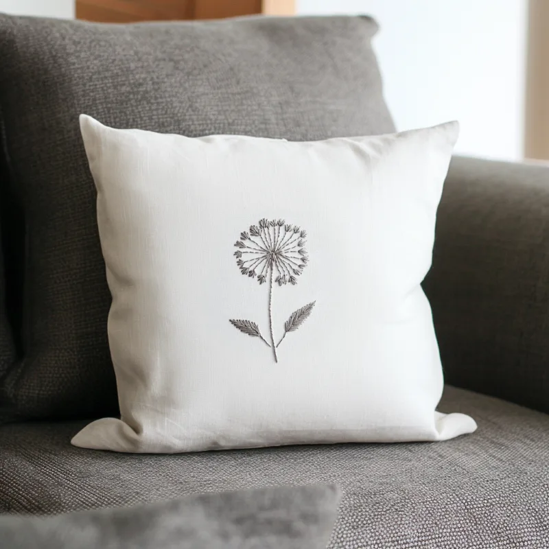 - The Fluffy Seed Head: You’ll use a delicate dance of back stitch and straight stitches. The back stitch creates clear, strong lines for the tiny stems radiating from the center. Then, with simple straight stitches of varying lengths, you’ll create the airy, fluffy seeds that look like they’re ready to catch the wind. This combination gives the seed head both structure and a wonderful, light texture.
