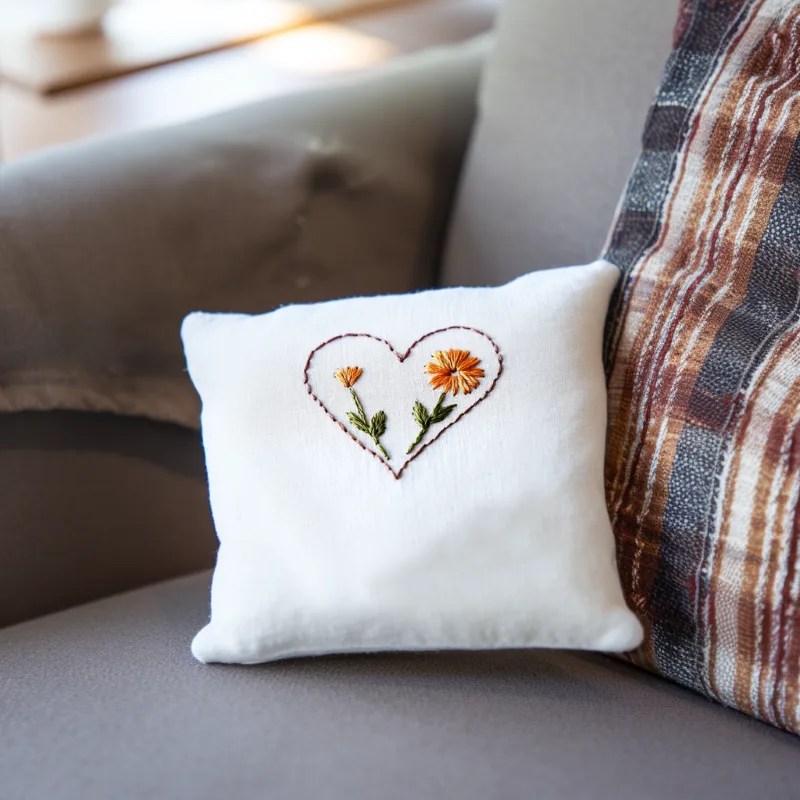 Because this stitch is so fluid, it handles the gentle curves of the heart effortlessly. It does not look harsh or blocky. Instead, it creates a smooth, continuous line that acts as a very gentle boundary for the flowers growing inside.
