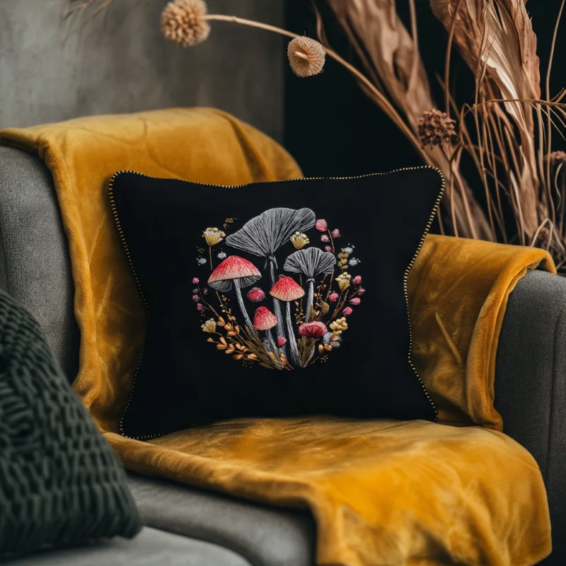 Whimsical Dark Forest Mushroom DIY Hand Embroidery Guide