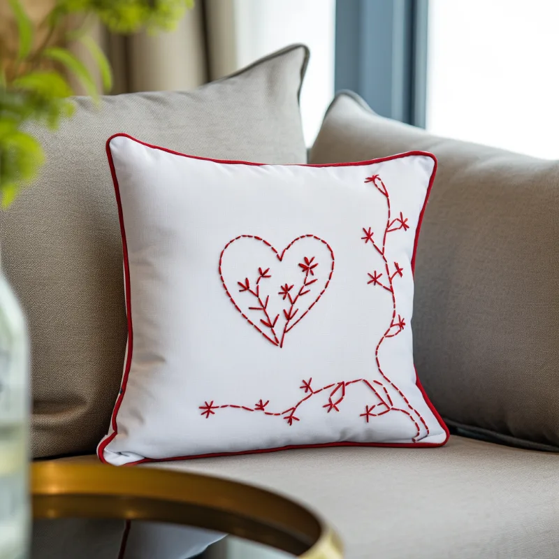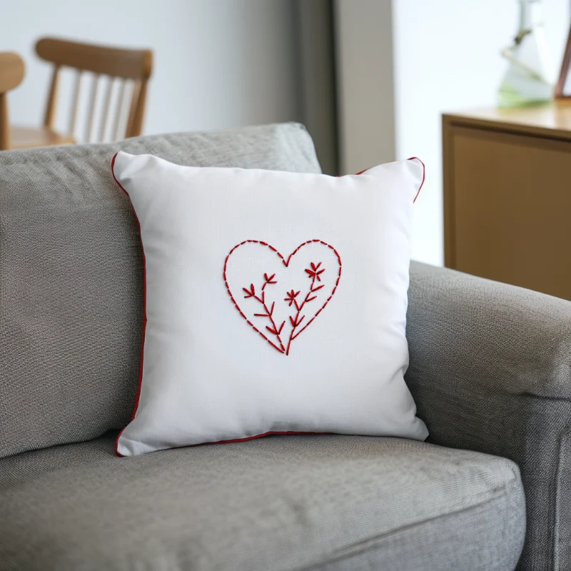 Look closely at this red embroidered outline, and you will see it is not just a heart shape. It is a space where life is actively taking root.