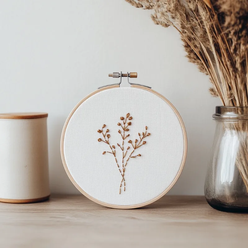 Want to hold onto a perfect autumn moment? This embroidery art captures the quiet beauty of a golden sprig, with delicate lines that feel drawn from the crisp autumn air.