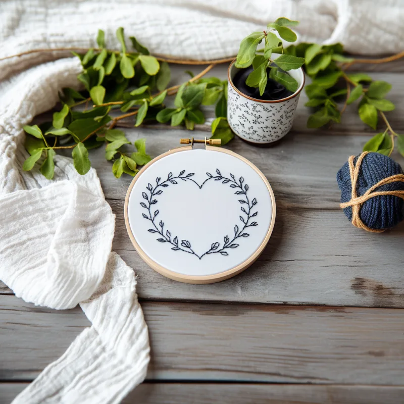 Simple Heart Wreath Hand Embroidery PDF for Mindful Stitching