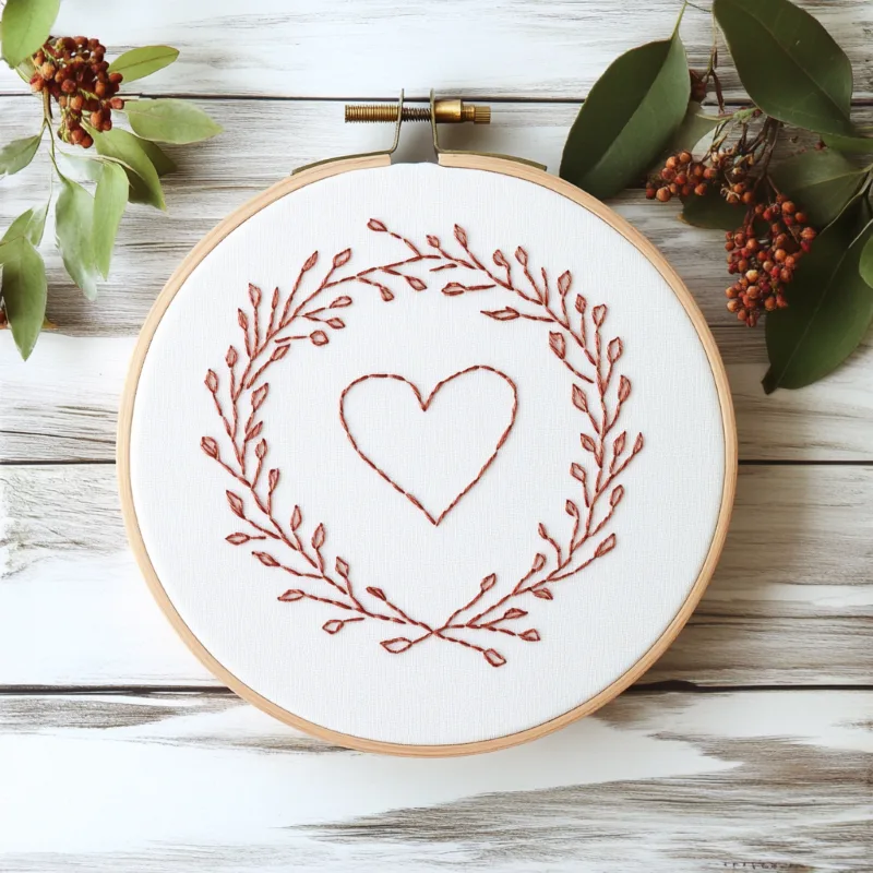 The leafy wreath protecting the heart becomes a symbol of the safe, warm haven that family provides. It’s one of the most sincere and peaceful blessings you can offer, a truly special piece for a DIY floral wreath embroidery project.