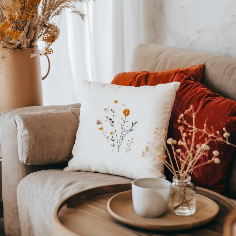 We picture this gentle wildflower design stitched onto the softest pure cotton baby blanket. Its soft colors and light, airy composition are perfect for welcoming a new little one.