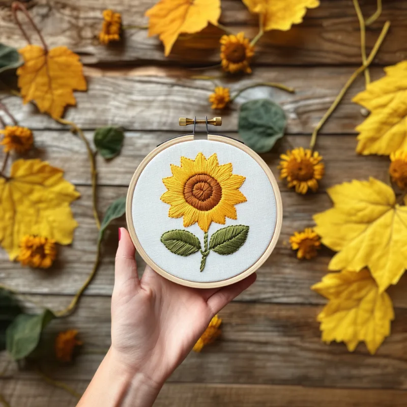 Capture the warmth of a sunny afternoon with this delightful sunflower embroidery pattern.