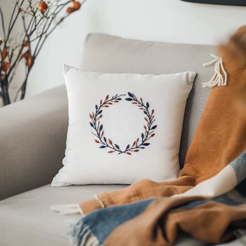 How will you bring this art to life? Imagine this lovely design stitched onto a pair of simple linen cushions in off-white, oatmeal, or charcoal grey.