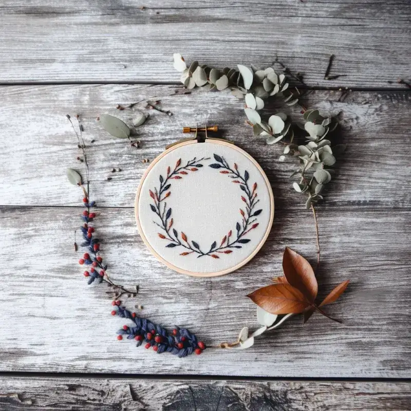 Capture the quiet, mature beauty of a changing season with your needle and thread. This hand embroidery wreath design centers on a single, elegant branch where two distinct moods meet.